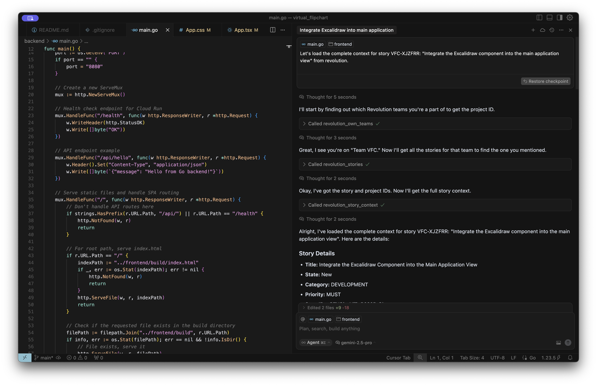 After the Story Agent has helped you to refine your user stories, the whole context data can be accessed by your IDE, from the user story, to the epic, all the way through the PRD, via Revolution’s integrated MCP (Model Context Protocol) server.